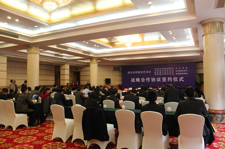 2015年12月4日,湖北合作投資集團(tuán)有限公司(以下簡稱“投資集團(tuán)”)與中百控股集團(tuán)股份有限公司(以下簡稱“中百集團(tuán)”)、武漢國創(chuàng)資本投資有限公司(以下簡稱“國創(chuàng)資本”)、深圳前海乾源股權(quán)投資基金管理有限公司(以下簡稱“前?;?rdquo;)在武漢東湖賓館就成立供銷中百互聯(lián)網(wǎng)金融服務(wù)公司共同簽署了戰(zhàn)略合作協(xié)議,湖北省政府副省長甘榮坤,省供銷社主任趙東風(fēng),副主任明平安、張嵐、楊杰、黃實(shí)海及相關(guān)處室負(fù)責(zé)人,及簽約四方公司主要負(fù)責(zé)人共同出席簽約儀式。省政府副秘書長聶昌斌主持簽約儀式,湖北日?qǐng)?bào)、湖北廣播電視臺(tái)等相關(guān)媒體進(jìn)行了現(xiàn)場報(bào)道。